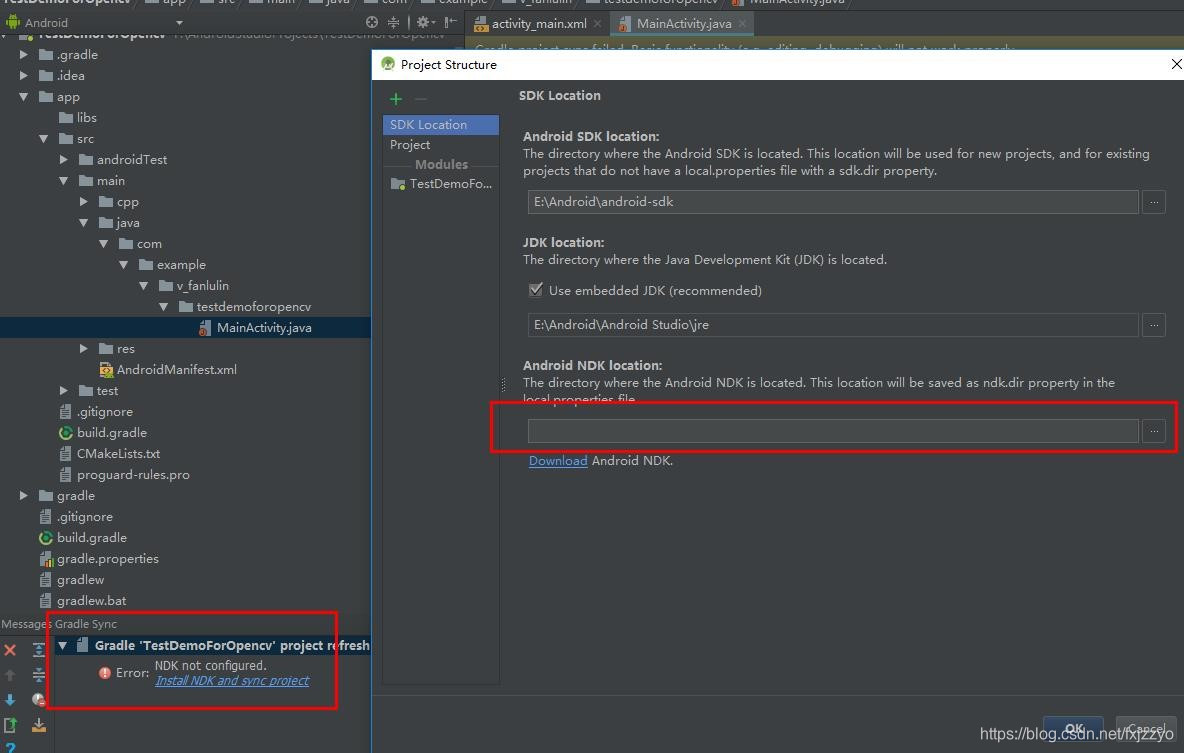 一开始可能会有错,很可能是ndk not found,解决方法是,添加ndk路径。