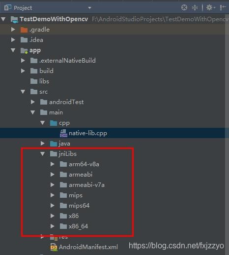 将opencv-3.2.0-android-sdk\OpenCV-android-sdk\sdk\native下的libs文件夹复制到项目的main目录下并重命名为jniLibs.
